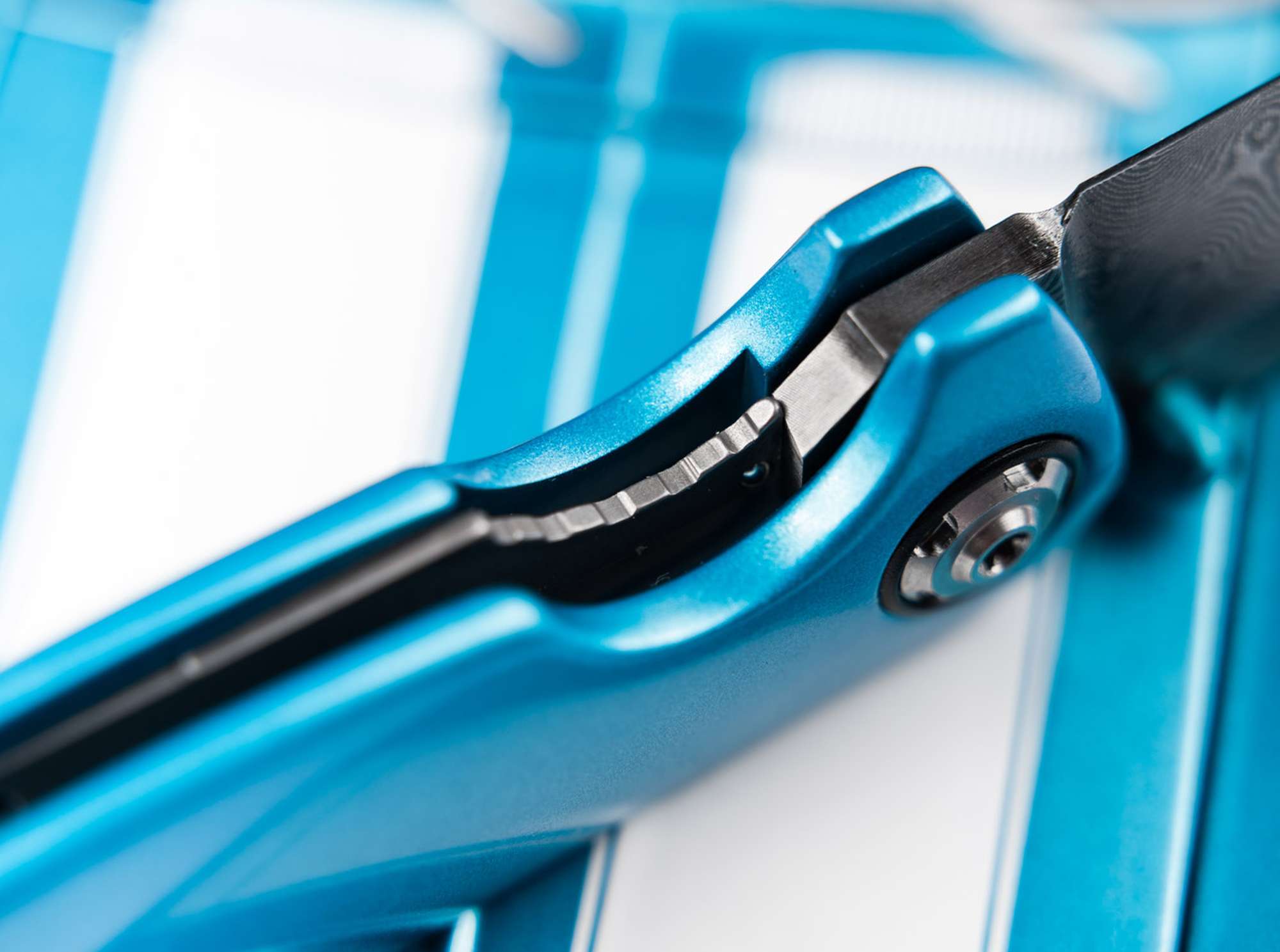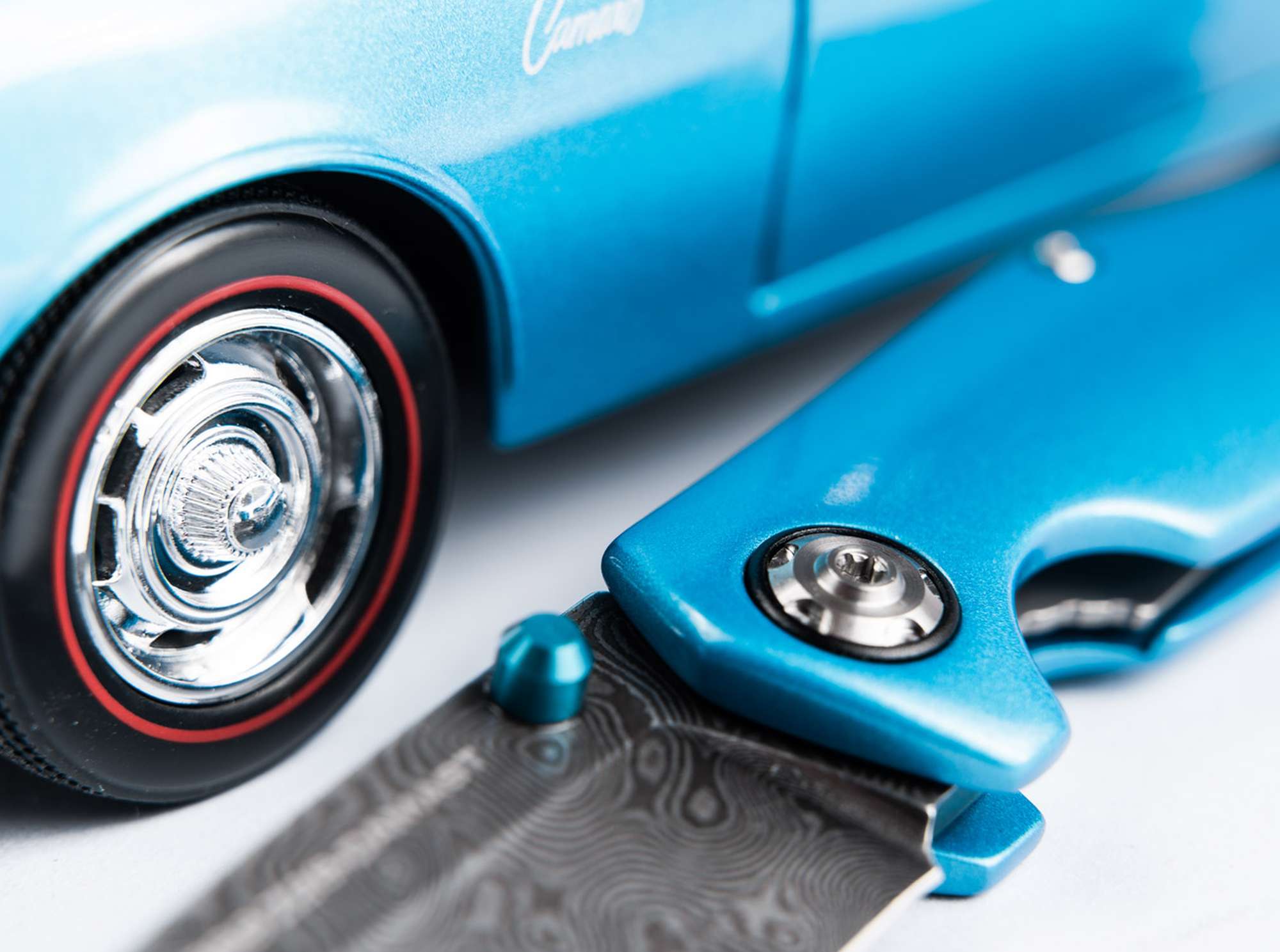 Böker zitiert das Design des Camaro Z28 und lässt die Legende wieder aufleben. Herausgekommen ist mehr als nur ein Messer. Ein Lebensgefühl, der gediegene Roadtrip beim blubbernden Klang des V8 Motors auf dem schier endlosen Highway, sanfte Sonnenstrahlen, die über den Canyon streifen und die Seele erwärmen. Unvergessliche Momente ohne Alltag genau wie das außergewöhnliche Böker 1969 Z28-Damast. In Zusammenarbeit mit dem italienischen Designer Tommaso Rumici entstand ein einzigartiges Muscle-Knife, welches die markanten Charaktereigenschaften des Camaro Z28 in Form und Stärke in sich vereint. Die edle Droppoint-Klinge aus 80-lagigem Damast wurde von Chad Nichols im Muster Tread handgeschmiedet und erinnert an die abfallende Cowl-Induction Motorhaube des Muscle Cars. Hierzu wurden Teile des oberen Querlenkers aus dem Camaro für die Klinge verwendet, die laufruhig mit dem blauen Daumenpin öffnet, während der bissige Edelstahl Liner Lock das Messer zuverlässig arretiert. Auf Basis einer Farbanalyse an einem Originalmodell wurde eigens für Böker die fein abgestimmte Lackierung in Le Mans Blue für den Aluminiumgriff erstellt, welcher in nostalgischer Weise die Linienführung der Karosserie interpretiert und mit spannenden Details aufwartet. Stufenheck, der kleine Heckspoiler und die kiemenartigen Lufteinlässe an den hinteren Kotflügeln wurden formschön in das Messer integriert. Die Klingenachsschraube ist den häufig bei Muscle Cars verwendeten Felgen liebevoll nachempfunden, wohingegen der geradlinige und aus dem Vollen gefräste Edelstahlclip eine Reminiszenz an die verchromten Türgriffe darstellt. Lieferung inklusive eines hochwertigen Schwebedisplays, jeder Menge Drehmoment und einer sanften Brise Fahrtwind im Haar. Handgefertigt in der Böker Manufaktur Solingen.