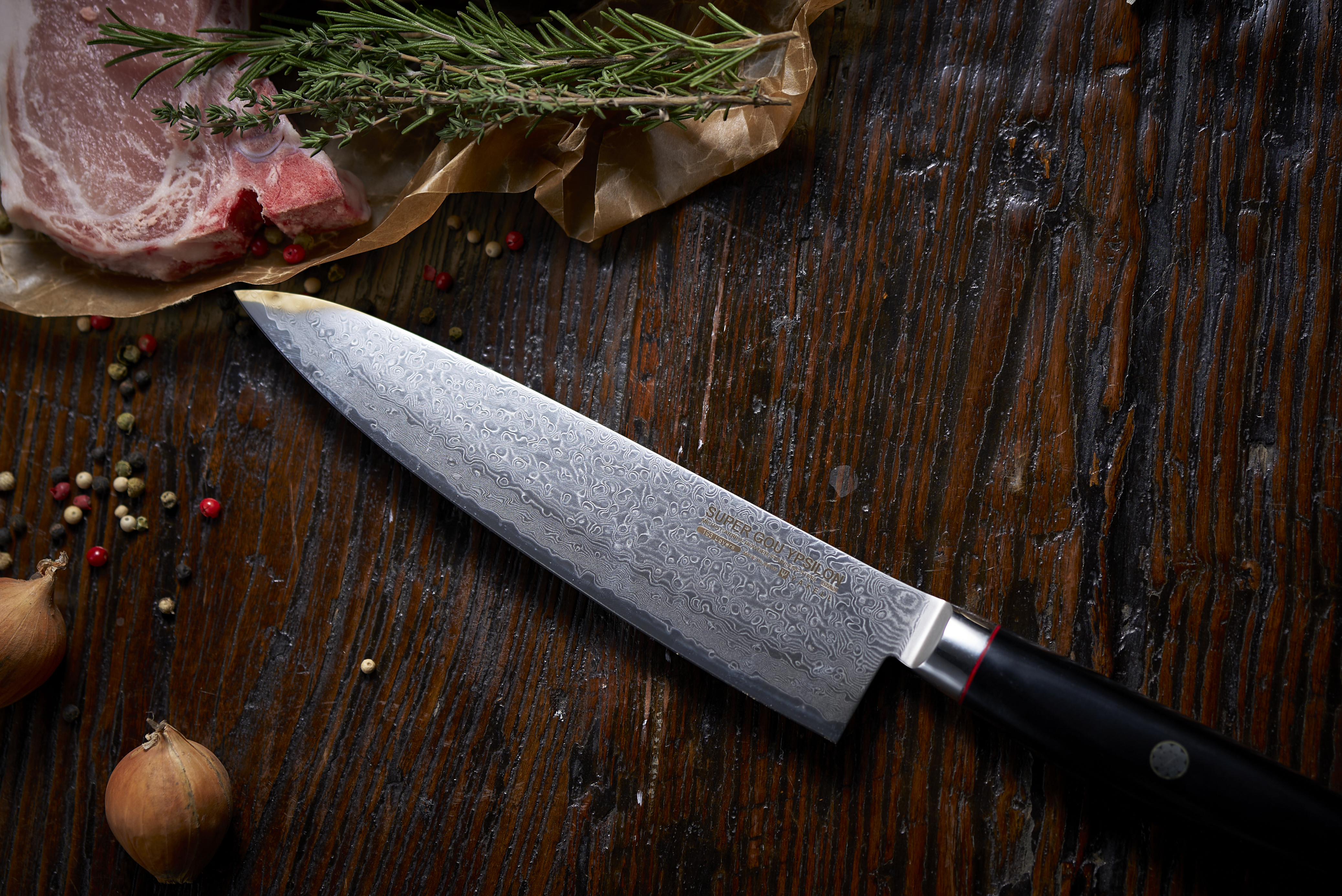 Super Gou Ypsilon Damastmesser können mit allen hochwertigen Schleifmitteln, wie z.B. dem Yaxell Messerschleifer oder Schleifstein geschärft werden.