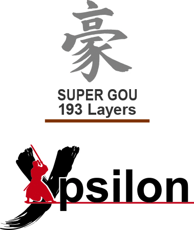 Super Gou Ypsilon Klingen bestehen im Schnittkern aus japanischen SG2 Mikrocarbid Pulverstahl. Dieser Pulverstahlkern beinhaltet viel Kohlenstoff und erreicht dadurch eine außergewöhnliche Härte von 63 Grad Rockwell (HRC). Ummantelt wird der Kern von 192 abwechselnd weichen und harten Edelstahlschichten. Die Klingen bestehen somit aus 193 Lagen.