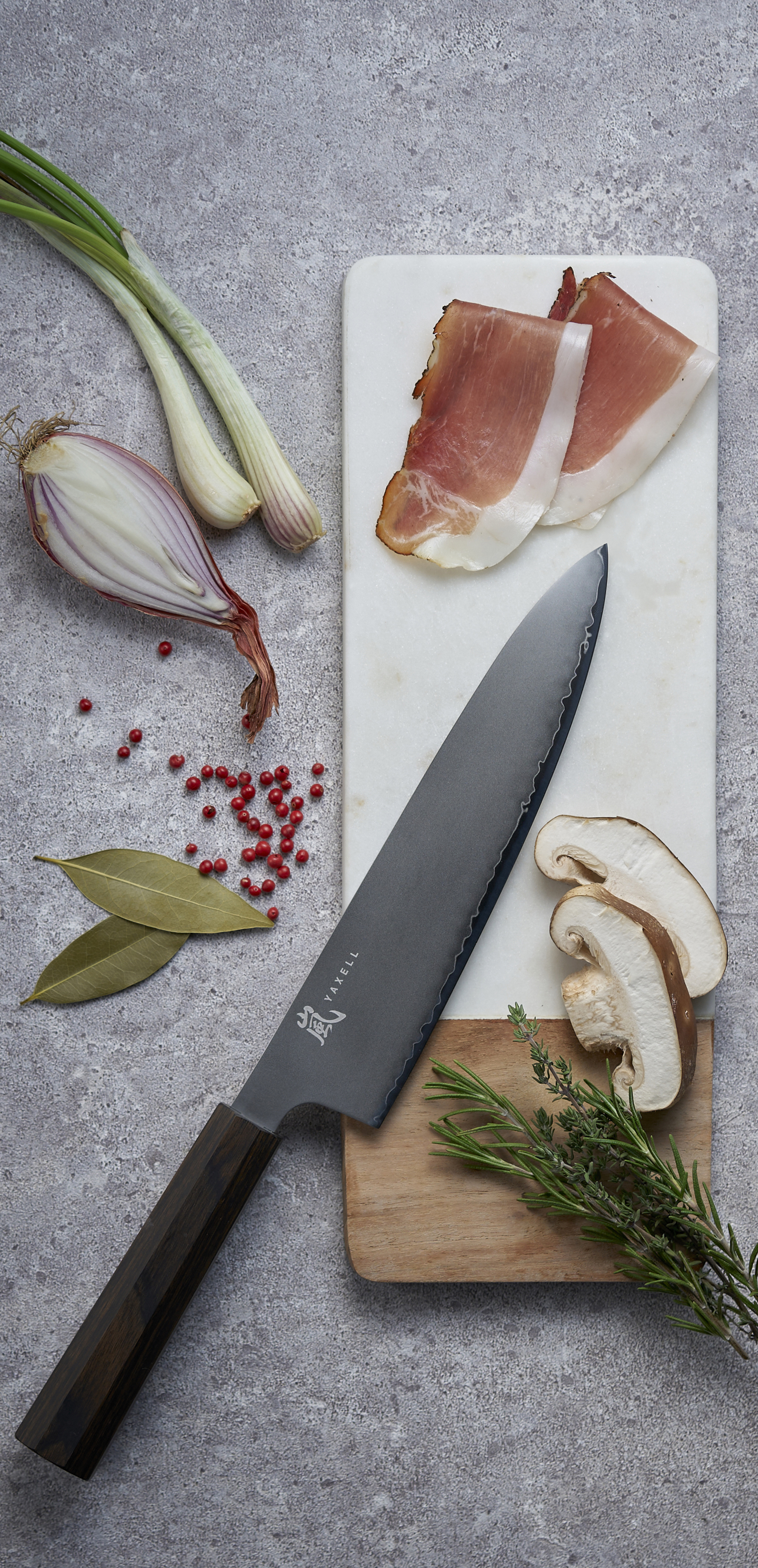 HANA Damastmesser können mit allen hochwertigen Schleifmitteln, wie z.B. dem Yaxell Messerschleifer oder Schleifstein geschärft werden.